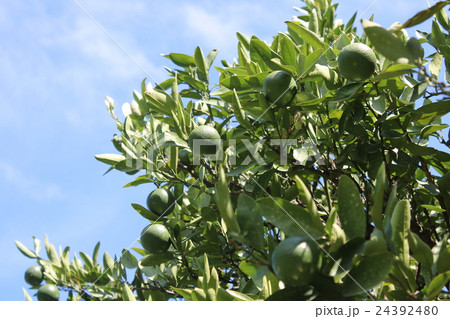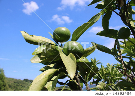 來自宇和島的溫州橘子8月份仍然是藍色的