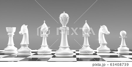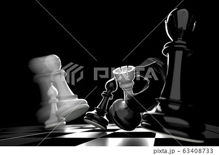 3D black chess pieces on a chessboard close-up on the background of other white chess pieces