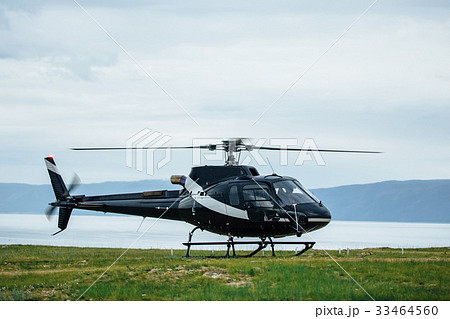 Black tourist helicopter flying