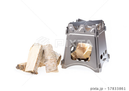 Folding wood stove and firewood