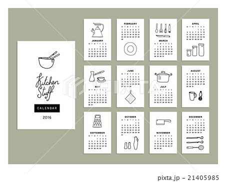 Calendar kitchenware of 2016. Vector illustration.
