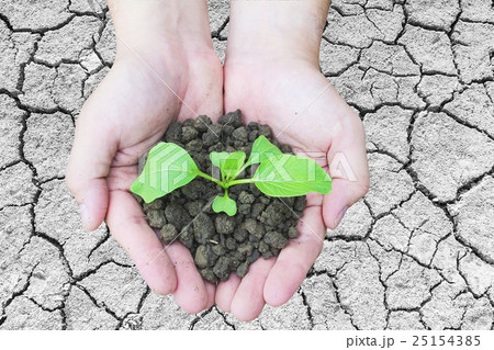 Top view of hands holding a small green plant
