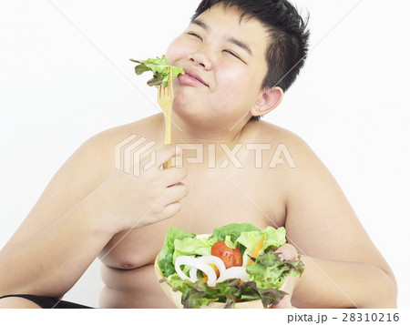 A fat boy hate to eat vegetable salad