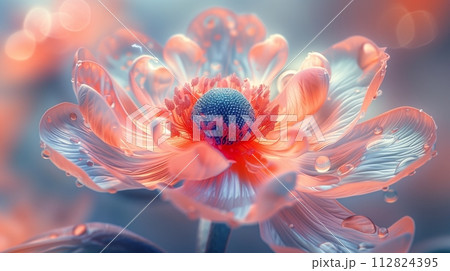 Close-up digital artwork of a delicate flower with water droplets on its petals, highlighting intricate details and vibrant colors.