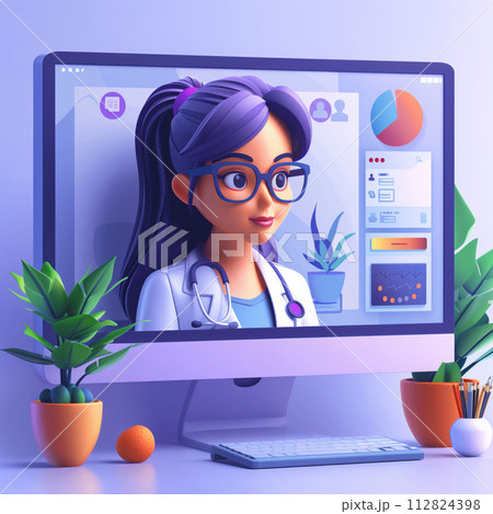 A friendly female healthcare professional doctor ready for a telehealth consultation through a virtual visit computer interface. Telehealth and virtual visit concept.