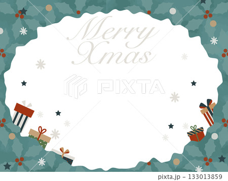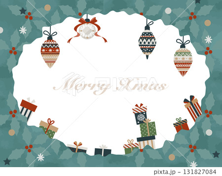 帶有冬青圖案和裝飾品的聖誕框架材料