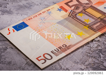 A Detailed CloseUp Image of a 50 Euro Banknote Resting on a Textured Surface with Interesting Features