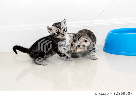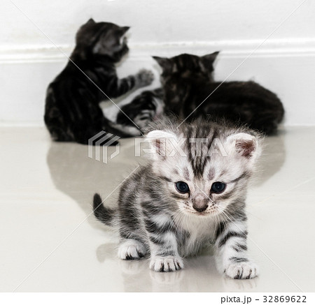Cute American shorthair cat kitten with copy space
