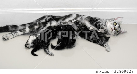 American shorthair mother cat was breastfeeding