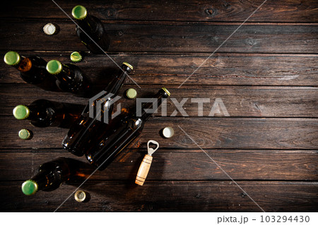 Bottles with beer and opener.
