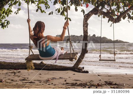 Woman on swings at the seashore