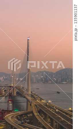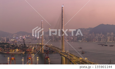 Jan 10 2026 Night Lights Illuminate Stonecutters Bridge Spanning Victoria Harbour