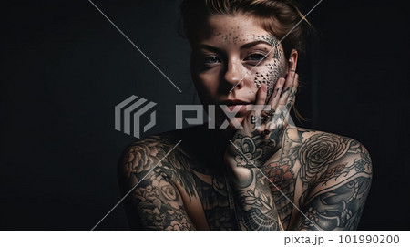 Full body tattooed woman portrait shot rear view - made with generative AI tools