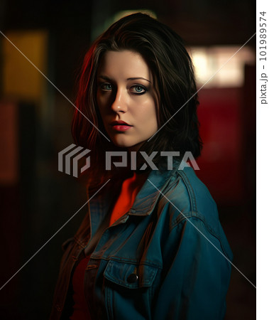 Colorful stylish portrait shot of a beautiful woman - made with generative AI tools