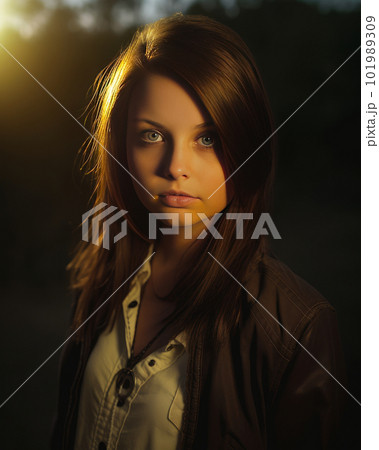 Portrait shot of a young beautiful woman - made with generative AI tools