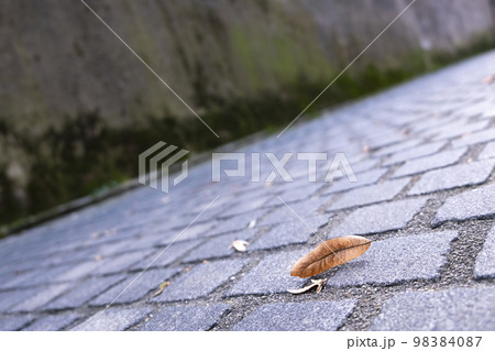 Desert pavement with a single leaf.