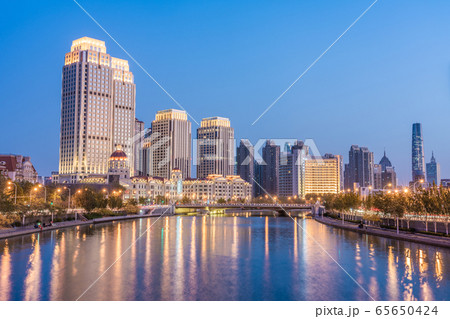 Evening view of the Tianjin Eye and river