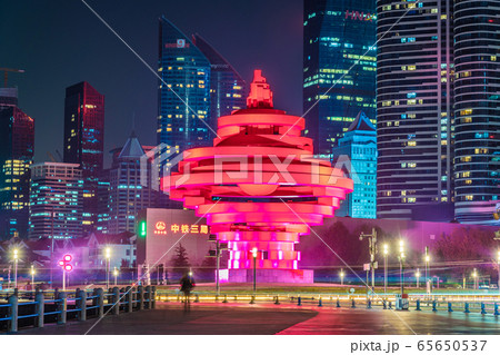 Night view of Qingdao financial district