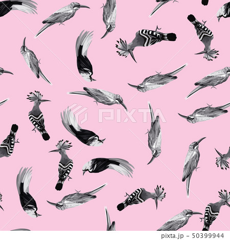 Black white tropical birds seamless pink