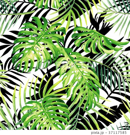 tropical plants watercolor summer seamless