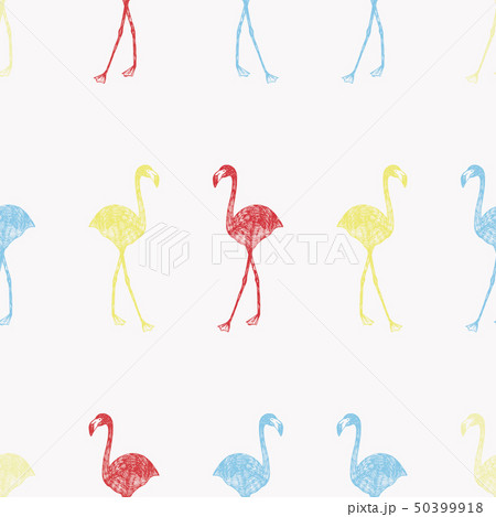 Multicolor flamingo in pencil seamless white