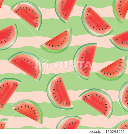 Seamless watermelons pattern. Summer holiday fruit sweet food background.