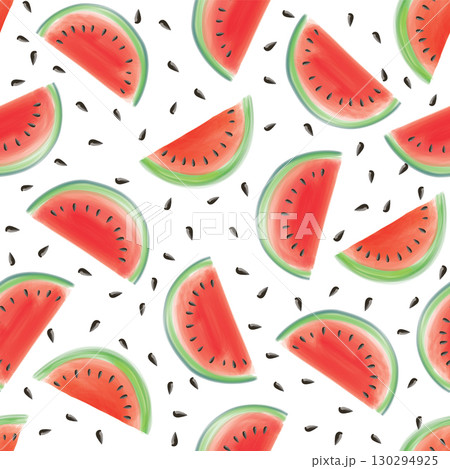 Seamless pattern with sliced pulp of fruit watermelon. Summer holiday food background.