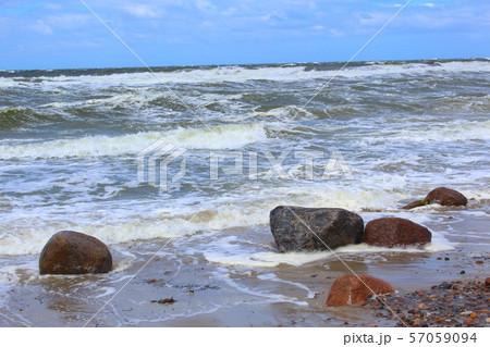 baltic sea beach in stormy weather with sea waves
