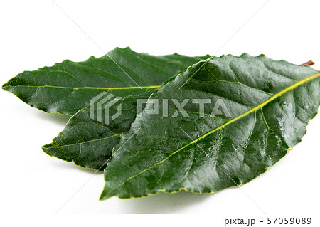 fresh bay leaves isolated on white copy space