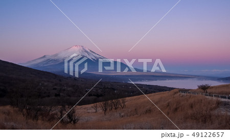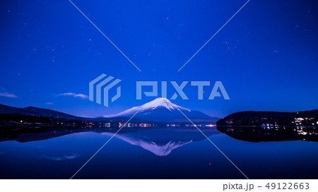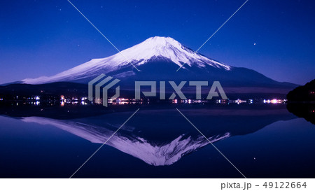日本,富士山在冬天,富士山在河口湖在晚上的絕景