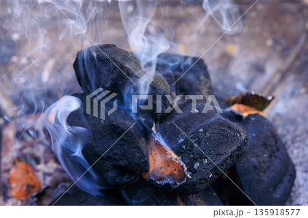從妙高高原池塘的枝葉上可以看到山上夕陽的光芒