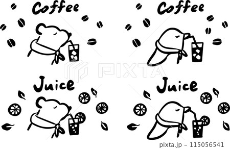 夏日冷餐菜單手繪套裝插畫(刨冰/飲料)(企鵝/北極熊)