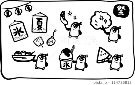 夏季套裝插畫(刨冰、企鵝、夏日祭典)