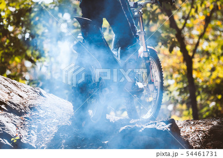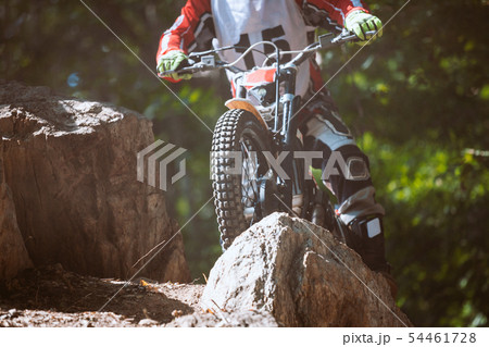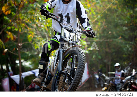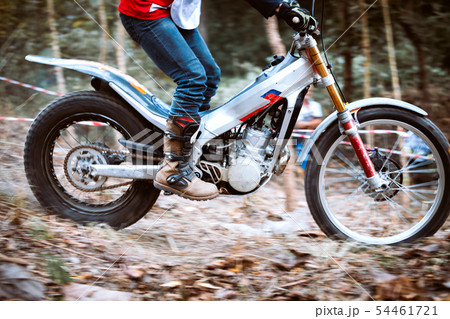 Trials motorcycle while competition in nature