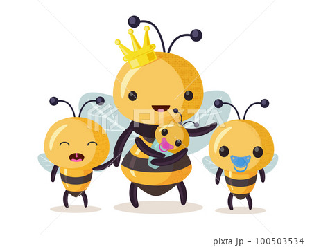 Bee family. Cartoon bee cute characters in flat style.
