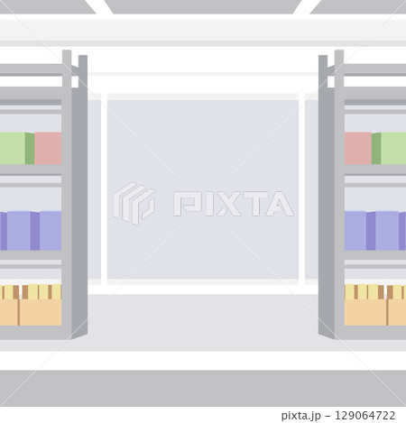 方形背景,手繪材料,簡單的向量風格背景插圖,商店貨架上排列著商品
