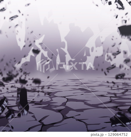 方形背景、手繪材料、塌陷的地面、地平線和大量瓦礫、抽象的背景插圖