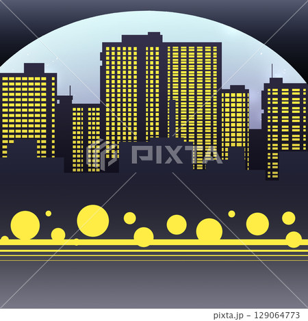 方形背景,手繪素材,向量風格簡約城市夜景與建築,背景插圖