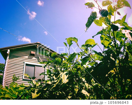 菜園裡種植的茄子和藍天