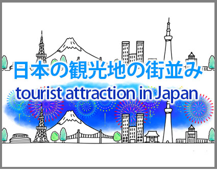 ◆日本の47都道府県と有名観光地の街並みシンプル線画◆