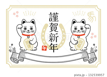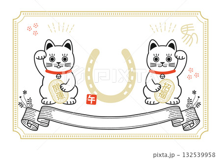 2024年新年賀卡明信片模板簡約招財貓設計2(橫式)無字/無註釋