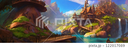 沐浴在夕陽下的蒸氣龐克風格的小酒館