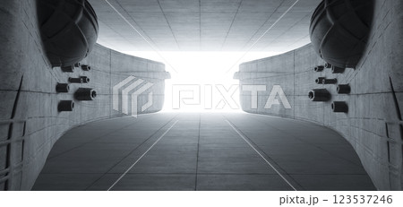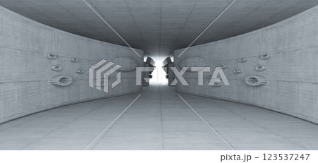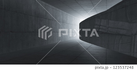 Abstract architectural minimalistic background. Contemporary showroom. Modern concrete exhibition tunnel. Empty gallery. Backlight. 3D illustration and rendering.