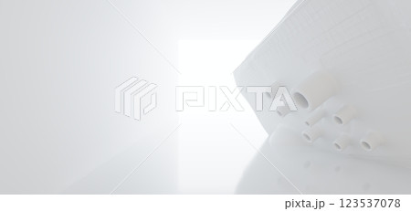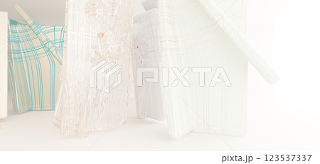 Luxury white abstract architectural minimalistic background. Contemporary showroom. Modern exhibition stand. Empty gallery. Backlight. Polygonal Graphic Design. 3D illustration and rendering.