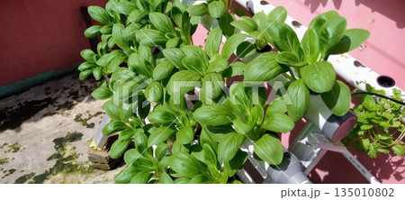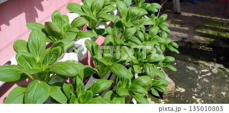 Healthy Hydroponic Pak Choi Garden in White Pipes for Modern Sustainable Food Production and Home Agriculture