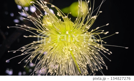 White Syzygium Flower Bloom with Long Stamens and Dark Background Macro