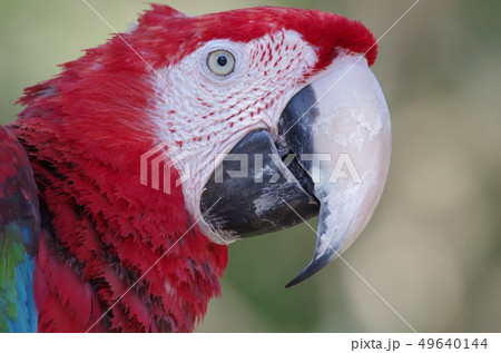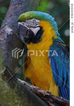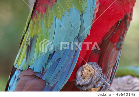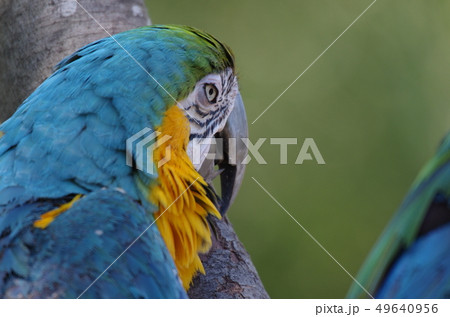 一隻綠翅鴨金剛鸚鵡的側視圖