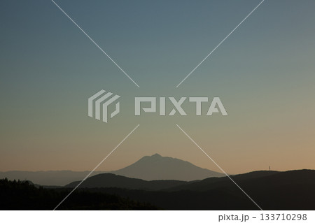 從弘前眺望的傍晚八甲田(北八甲田)。主峰是御嶽山。