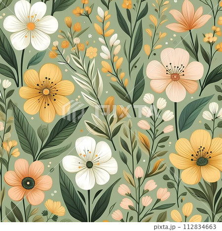 春天的花朵和葉子無縫圖案