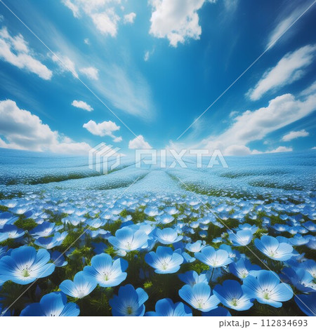 藍天映襯下盛開的粉紅蝶花田的插圖